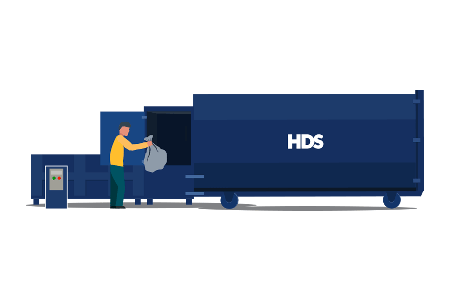 How does a stationary waste compactor work? The compactor unit, fitted with a hydraulic compression ram, stays permanently mounted at your location. That’s why it’s called stationary, the compactor does not move. The receiver box is removed and emptied. Waste is compacted into this detachable container, and when it’s full, our team swaps it out without disrupting your operations.