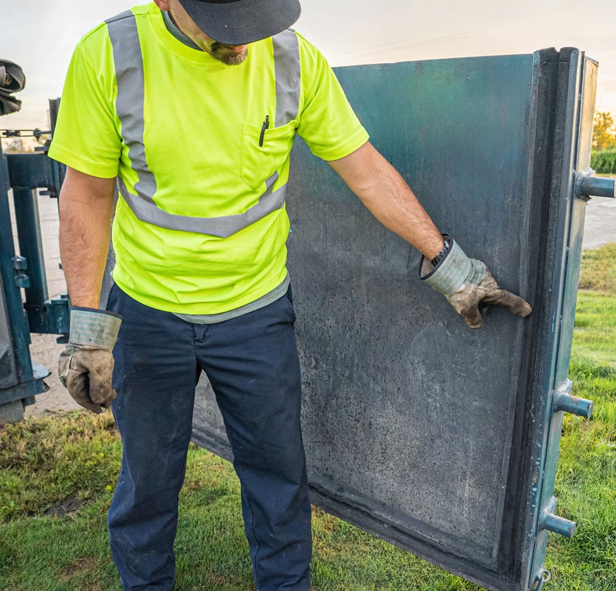 Covered dumpsters are often used with a sealed dumpster. For thicker or semi-liquid materials, such as sludge, slurry, or other viscous waste, Homewood Disposal Service offers sealed dumpsters, often referred to as sludge boxes. Unlike traditional open roll-off containers, sludge boxes are fully sealed and water-tight, featuring a gasketed rear door that prevents leaks during transport.