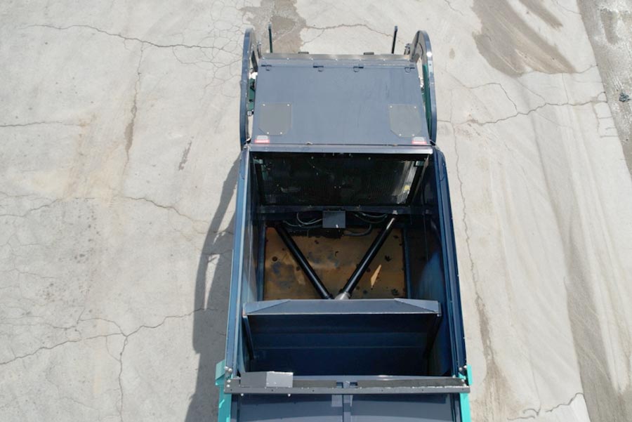 The Curotto Can sits at the front of the truck, acting as a large bucket that holds trash from multiple household carts. When the bucket fills, the truck lifts it to the top and dumps the trash into the body. This system lets our drivers service multiple houses on your block without stopping.